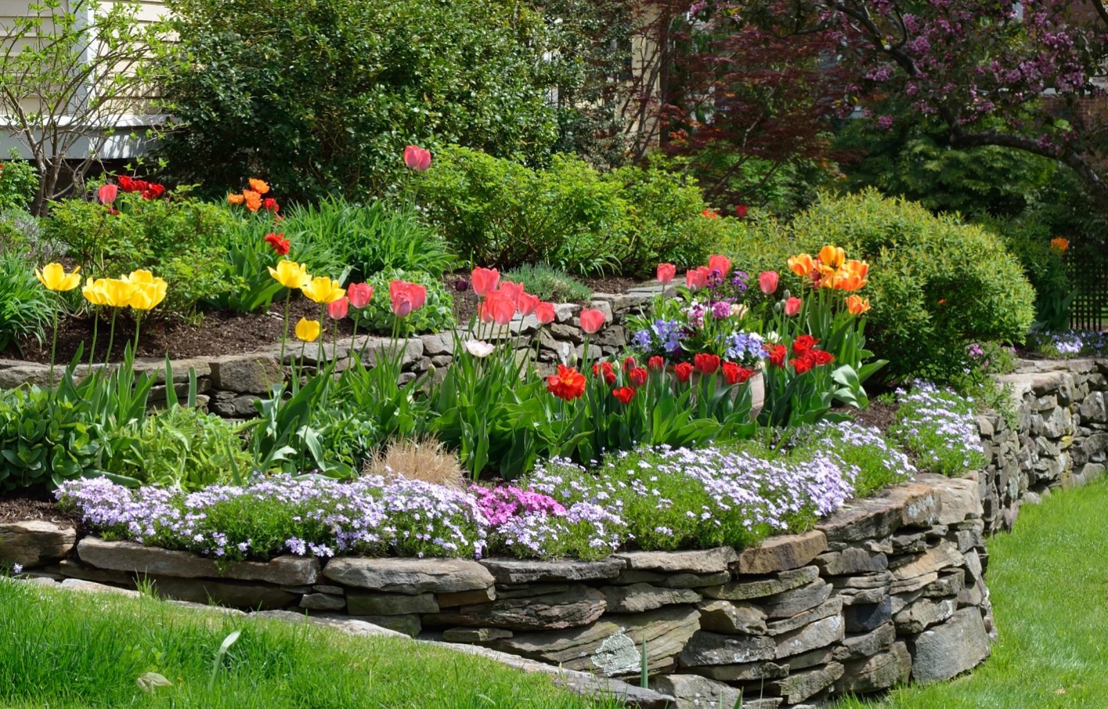 With retaining walls comes the opportunity to landscape in tiers. Each tier becomes a unique garden of its own, presenting different opportunities depending on the microclimate. From a distance, tiered gardens resemble a wall of flowers, and walking through it, they become a waterfall of visual beauty, scent, and color.