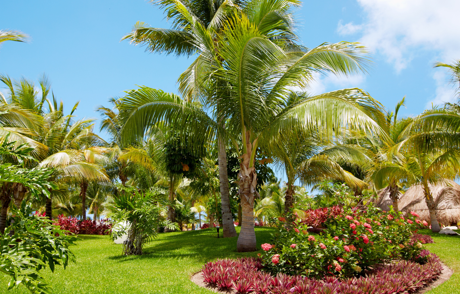 Enhance the tropical feel of your garden with structures inspired by island architecture. Install pergolas draped with lush vines, bamboo fences or screens for privacy, and thatched-roof gazebos or tiki huts for relaxation areas. These structures add visual interest and provide shade, creating tropical retreats within your garden.