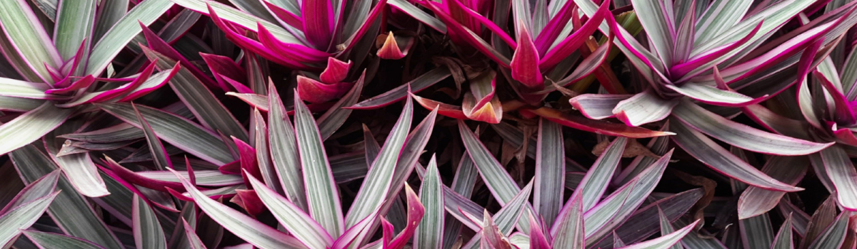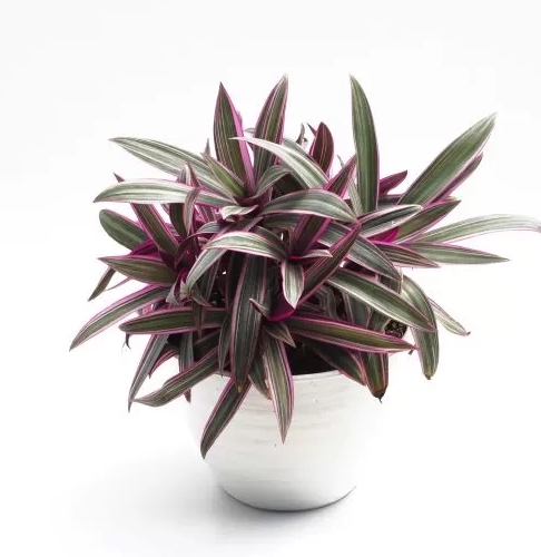 Tradescantia Spathacea commonly known as “Moses in the Cradle” are native to Mexico, the West Indies and Central America. They are easy to care for and have very attractive leaves. These plants produce rosettes of long, waxy, sword-shaped leaves that are glossy green or green, purple and white striped on top and a rich purple on the underside. The very small white flowers, tucked away in a purple boat shaped bract, give Moses-in-the-Cradle their common name.